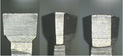 The following three photos show how with a proper break-in, tooth edge damage can be avoided.