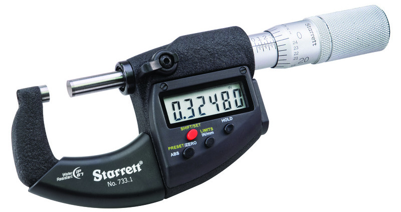 The 3732.1 Electronic Micrometer is a full-featured precision measuring tool built with customary Starrett quality and workmanship. The 3732.1 includes a large, easy-to-read, high contrast LCD digital readout for clear readings. With its auto