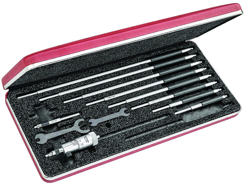 Inside micrometers directly read the internal dimensions of holes, bores and slots. Internal diameters in 1" increments to 0.001" accuracy and 50 millionths (0.00005") resolution. Our inside micrometers are known for their accuracy and durability and
