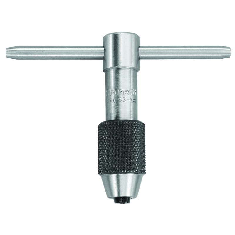 The 93 T-Handle Tap Wrenches are for holding taps, drills, reamers and other small tools to be turned by hand. They are properly heat treated to withstand ordinary shop use. The jaws conform to the tool being held, making it rigid and less apt to loosen.